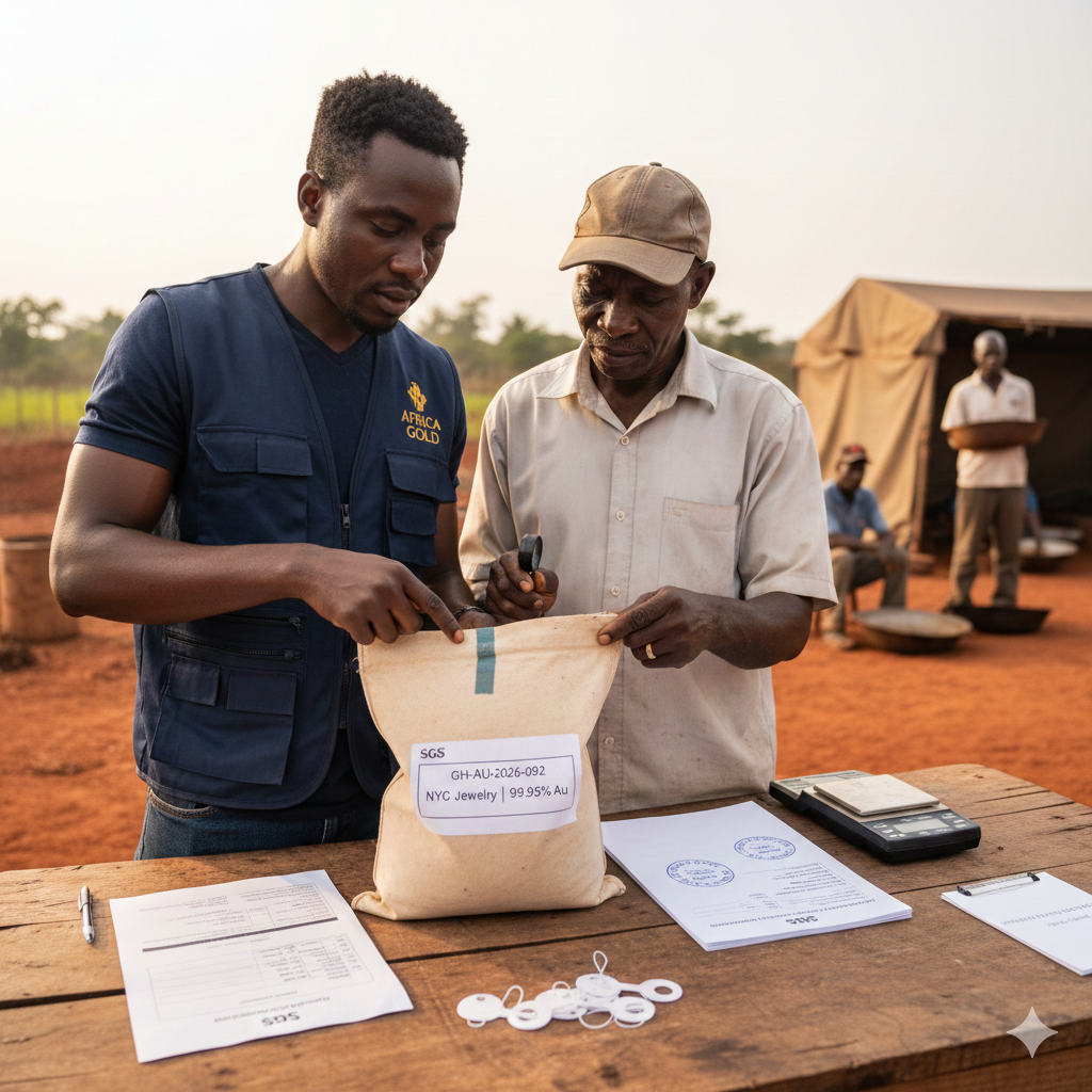 AFRICA GOLD sourced 42kg of refined gold grain from a Minerals Commission-licensed operation in Ashanti Region, arranged independent assay (Au 99.95%), sealed samples with tamper-proof tags, and handled air freight with full U.S. customs documentation. The shipment arrived at JFK within 8 days with full traceability from mine to workshop.