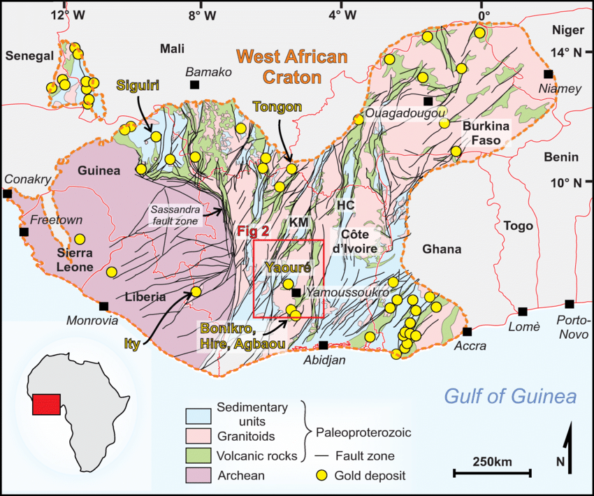 Most of Africa’s gold occurs in well-defined geological zones: