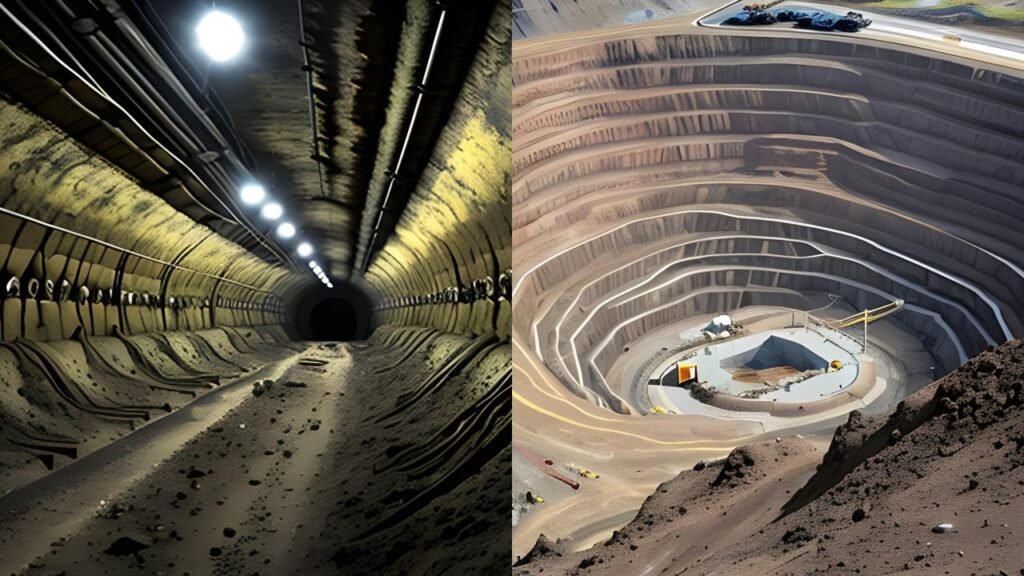 • Underground mining: Used for deeper, high-grade ore bodies.